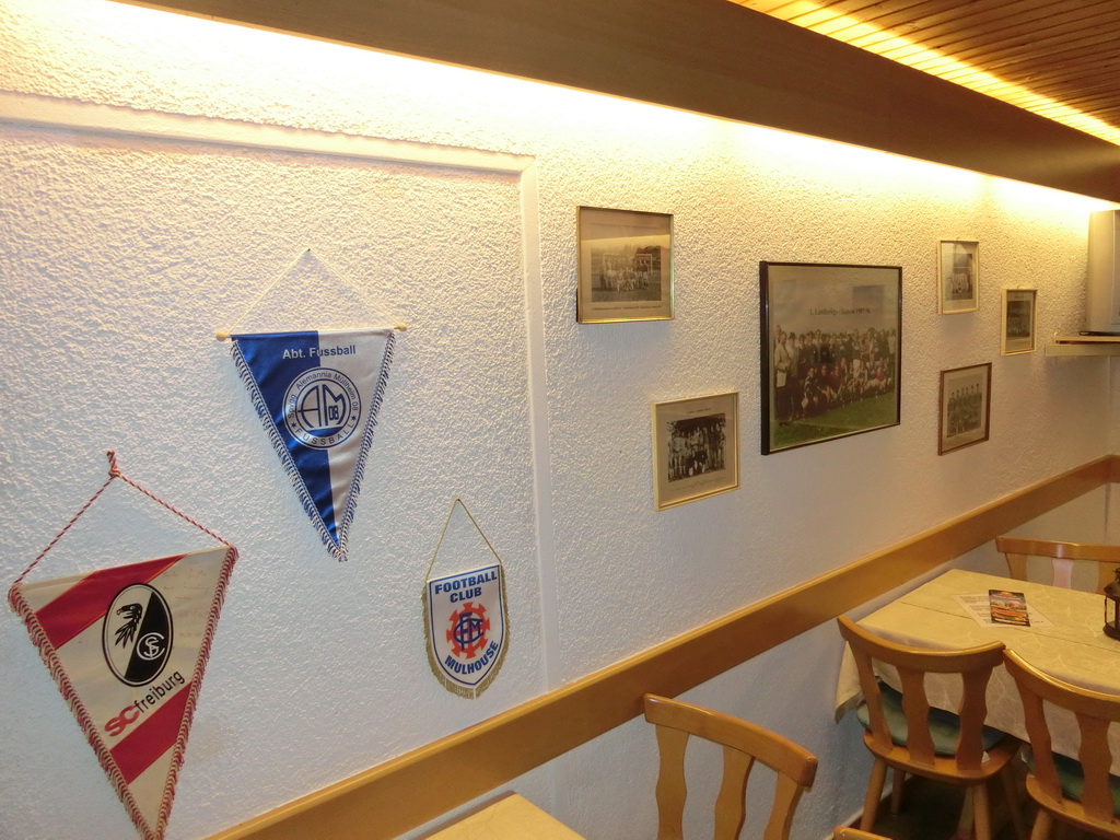 Im Gast- und Vorraum hängen alte und aktuelle Fotos der Fußballer und eine neue Lampe.